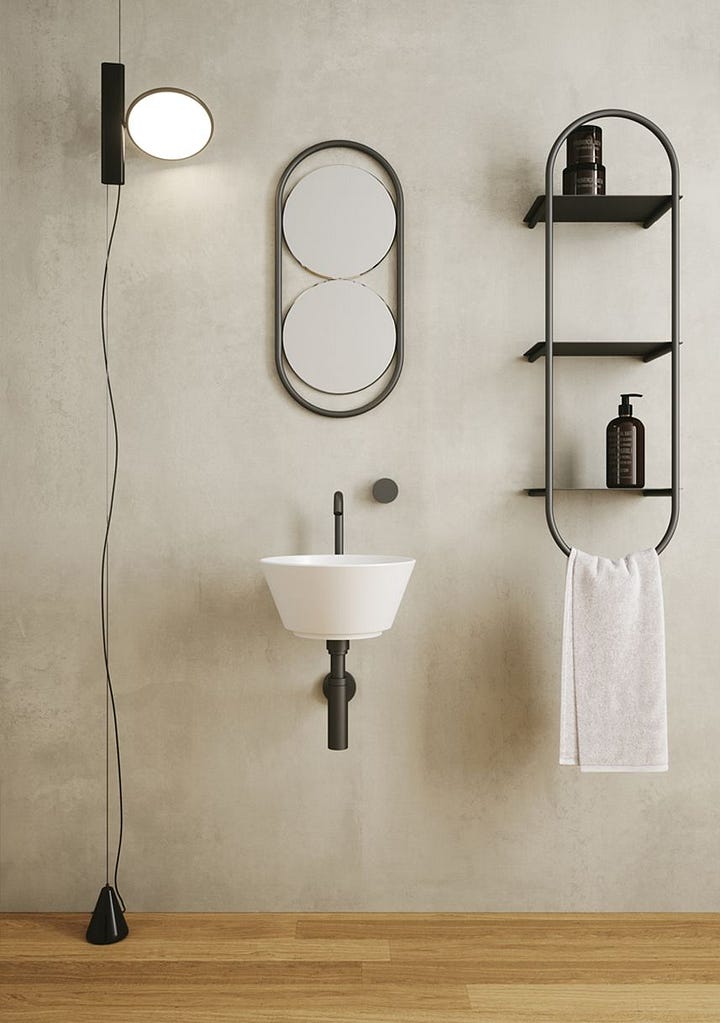 First it’s too homogeneous and I don’t even get what products are – is the tap included in the collection for example? It has the same color as the accessories. It’s evident that it’s CGI and it’s very cold, not very well done, no reality perceived. Then, who’s going to put a (beautiful btw) €660 lamp near a sink? This first happens doing things not with strategy but because “everyone does it that way,” then leaving critical decisions to the wrong hands.